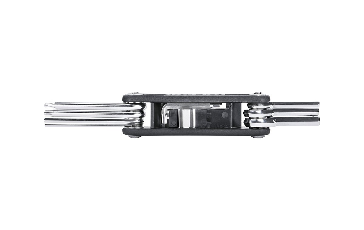 Topeak X-TOOL - небольшой и бюджетный, складной мультитул из хромованадиевой стали в чёрном цвете. Модель сочетает в себе набор из 11 необходимых инструментов для быстрого ремонта и настройки велосипеда во время заездов. Легко помещается в подседельную сумку и карман вашей джерси.
